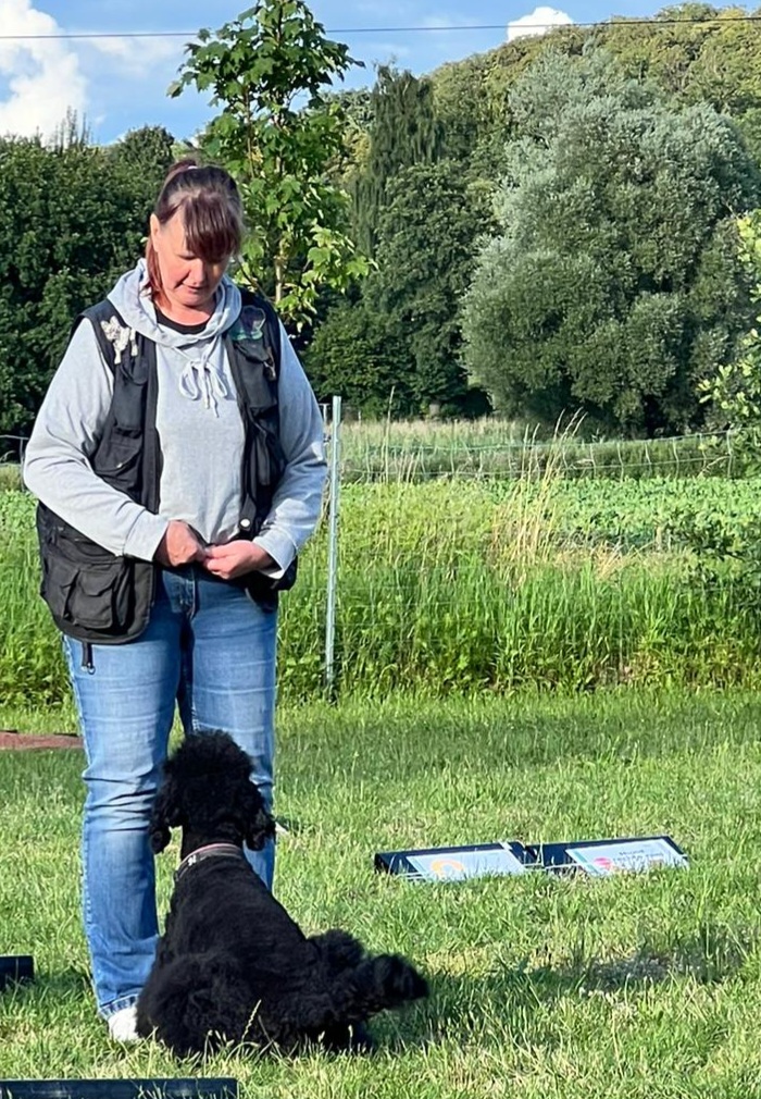 Nyx wird sportlich im Rally Obedience ausgebildet und hat im Oktober 2024 ihre Begleithundeprüfung bestanden