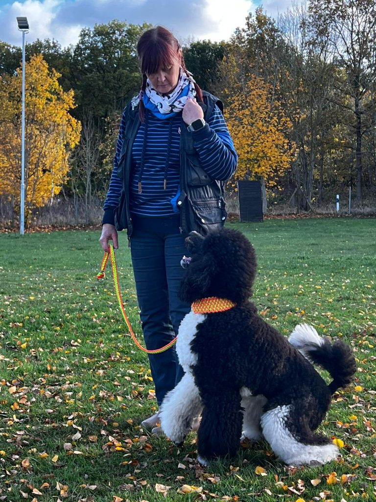 Taylor wird für die Begleithundeprüfung vorgearbeitet und hat auch schon die ersten Einheiten des RO gelernt.